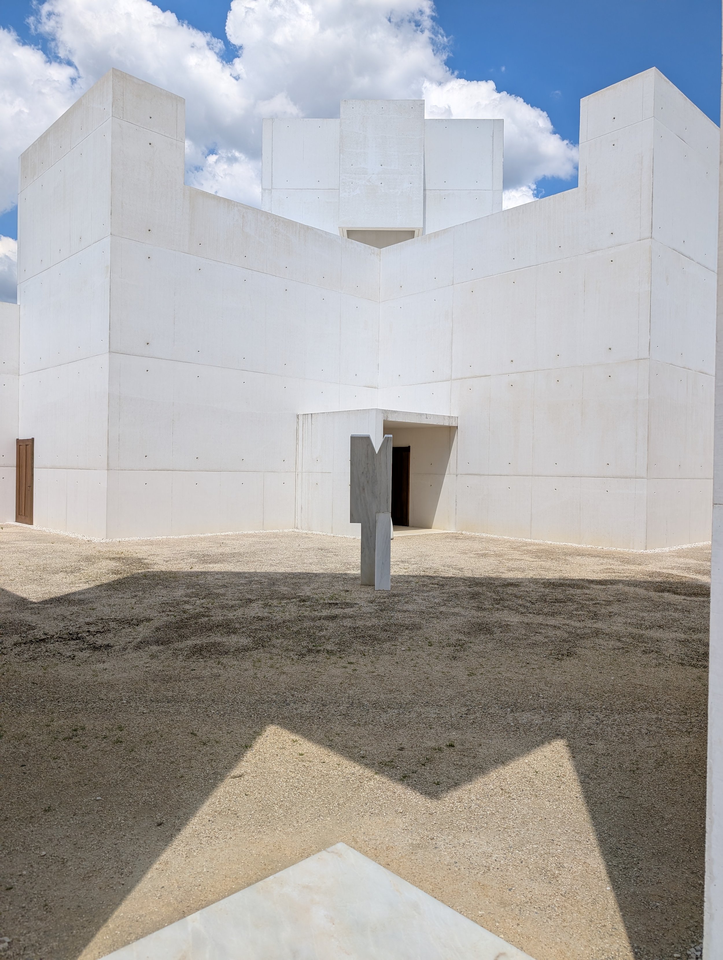 I took a picture of the sculpture. It stood three-stories tall with two doors and no conventional windows. Yet light poured into the structure from varying angles, thanks to a novel arrangement of openings where one would expect walls.